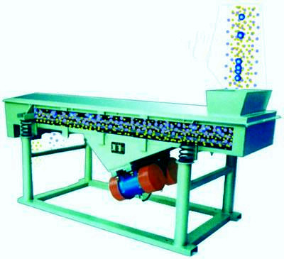 該機利用振動電機激振作為振動源,使物料在篩網(wǎng)上被拋起,同時向前作直線運動,物料從給料機均勻地進(jìn)入篩分機的進(jìn)料口,通過多層篩網(wǎng)產(chǎn)生數(shù)種規(guī)格的篩上物、篩下物、分別從各自的出口排出。