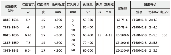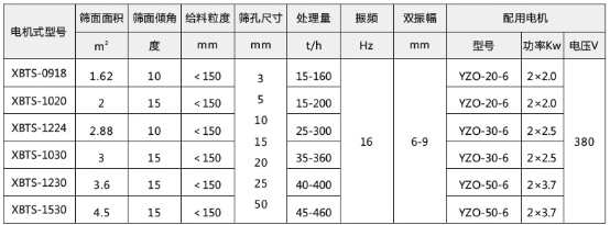 XBTS系列彈臂振動篩面傾斜安裝,角度在20°-35°之間,與其它同類型產(chǎn)品相比具有下列特點(diǎn):